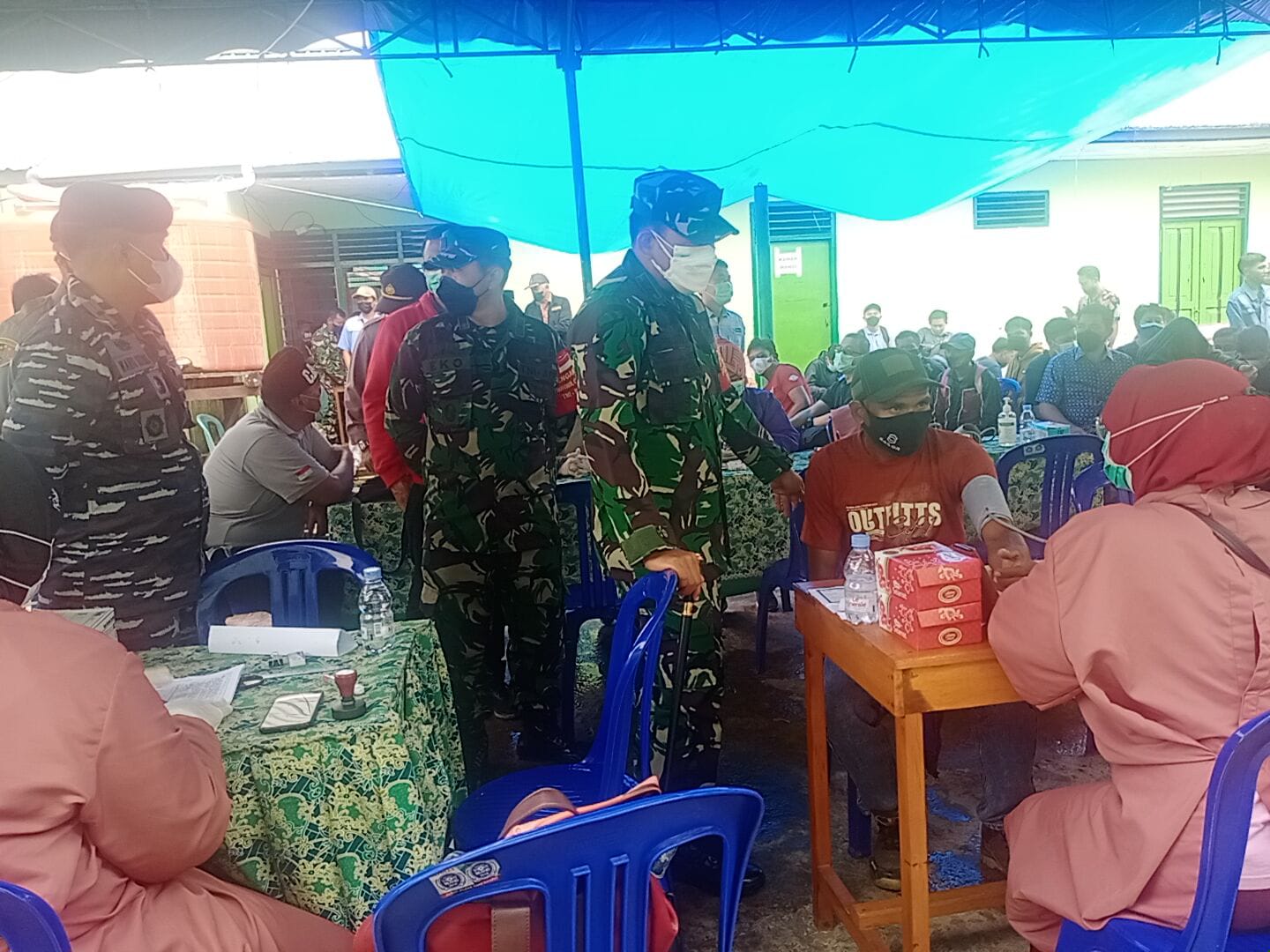 Dandim 0909/Kutai Timur Letkol Czi Heru Aprianto, saat memantau pelaksanaan vaksinasi di Kecamatan Sangkulirang.