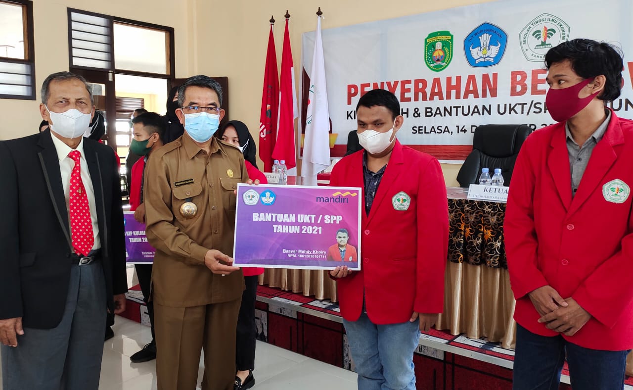 SIBERONE.ID, KUTIM – Sekolah Tinggi Ilmu Ekonomi Nusantara (Stienus) Sangatta, menggelar kegiatan penyerahan beasiswa KIP merdeka dan UKT SPP bagi mahasiswa lama. Program pengembangan SDM kampus itu memberikan beasiswa KIP 2021 kepada 73 mahasiswa, Selasa pagi (14/12/2021).
