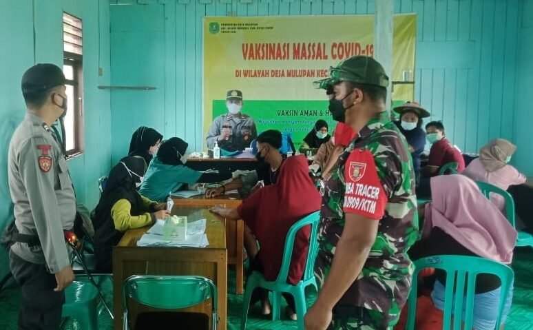 SIBERONE.ID, KUTIM – Bersama bhabinkamtibmas, Babinsa 0909-05/Muara Bengkal Kopda Selamet, yang membina Desa Mulupan terus bersinergi memberikan dampingan dan pengamanan jalannya pelaksanaan vaksinasi yang dilaksanakan UPT Puskesmas Muara Bengkal, Selasa (11/1/2021).