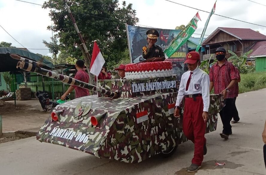 Danramil 0909-05/Muara Bengkal yang diwakili oleh Babinsa Serka Saiful Bukhori turut melepas peserta pawai yang star di lapangan sepak bola Hangtuah, Desa Muara Bengkal Ulu Kecamatan Muara Bengkal, Kutai Timur (Kutim), Sabtu (20/8/2022).