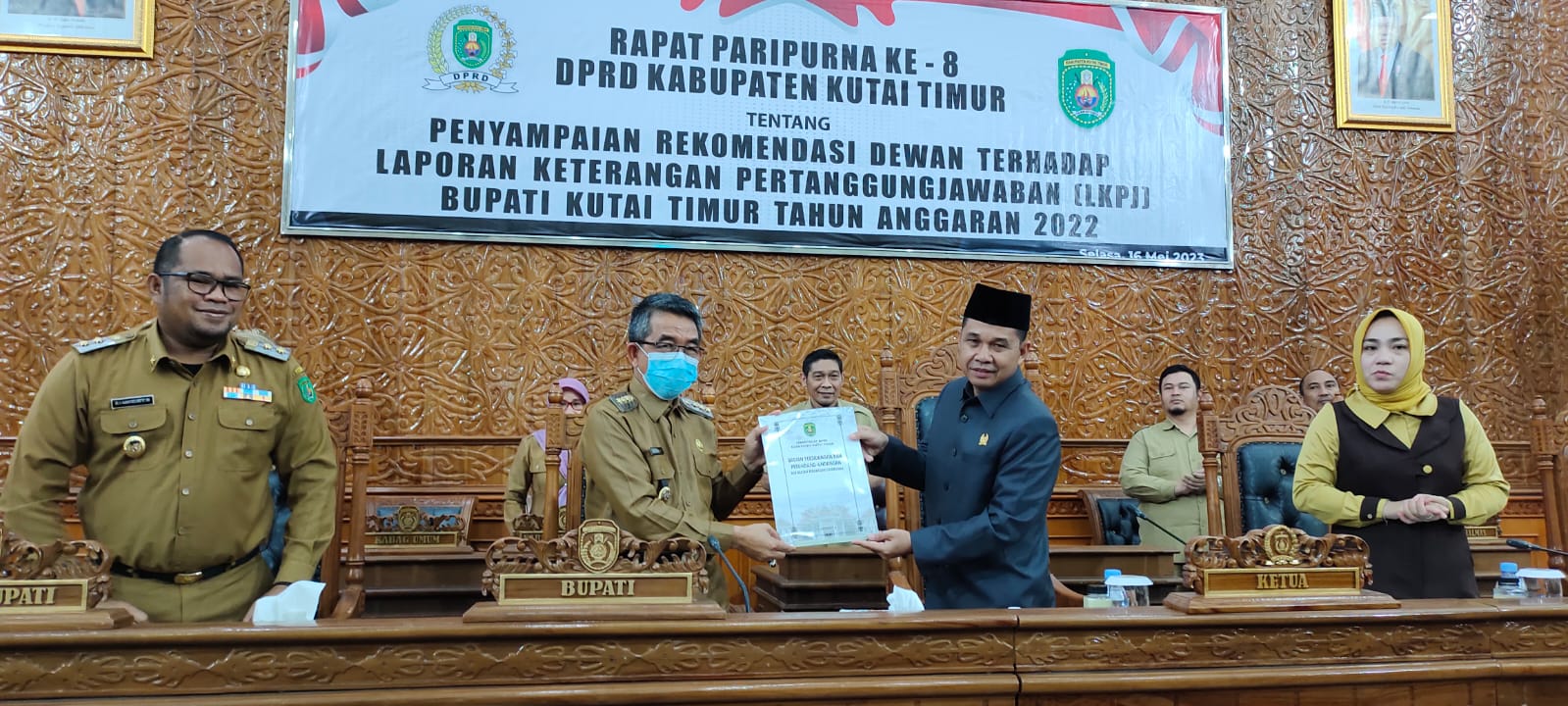 SIBERONE.ID, KUTAI TIMUR – Sekretariat Dewan Perwakilan Rakyat Daerah (DPRD) Kutai Timur (Kutim) menggelar rapat paripurna ke-8. Adapun tujuannya, yakni terkait Penyampaian Rekomendasi Dewan Terhadap Laporan Keterangan Pertanggungjawaban (LKPj) Bupati Tahun Anggaran 2022, Selasa (16/5/2023).